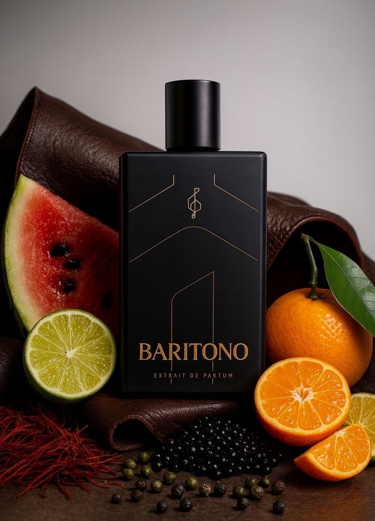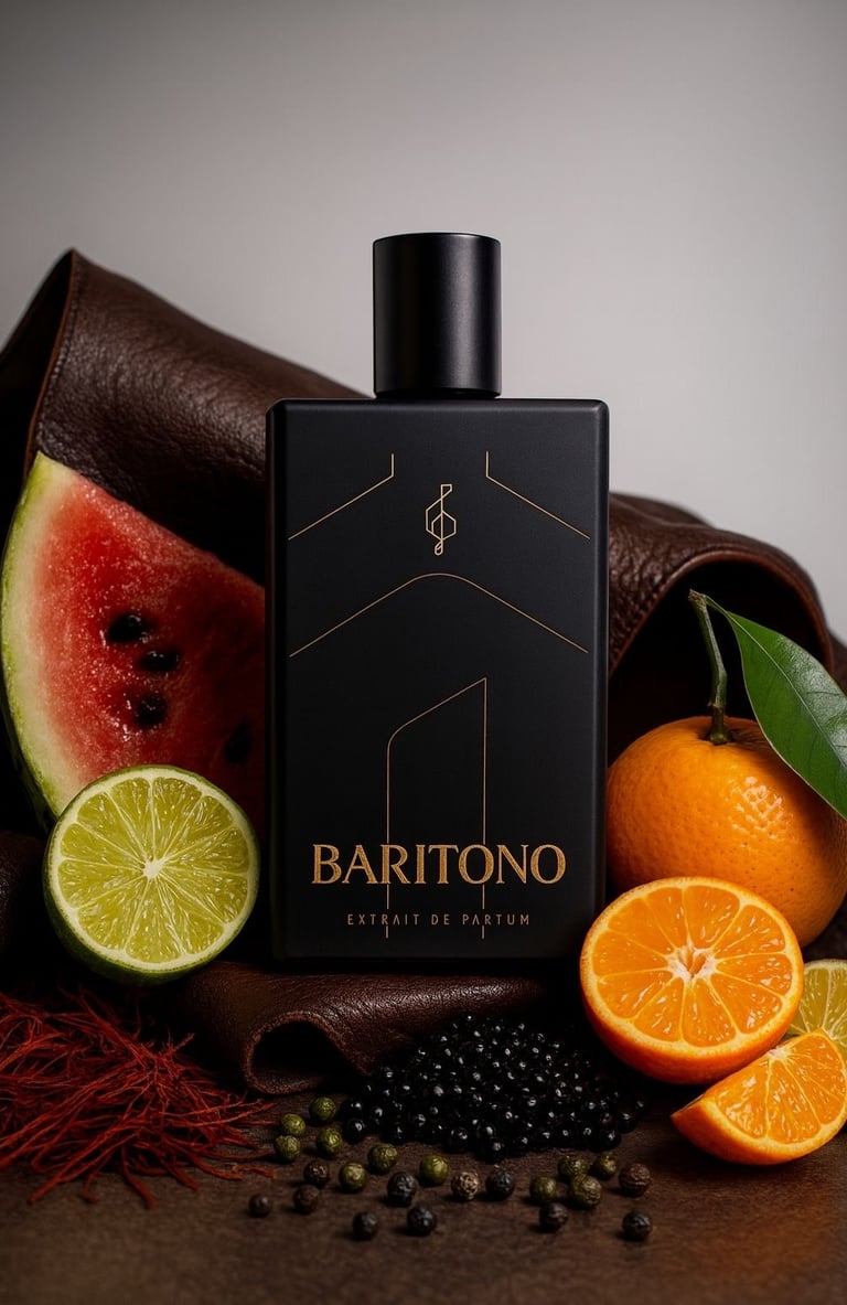 Barítono es una fragancia elegante, profunda y envolvente, con una presencia masculina marcada y perfectamente balanceada. Se distingue por ser sofisticada y moderna, con una estela que deja huella sin resultar invasiva. Intensa pero refinada, seductora pero inteligente, está diseñada para transmitir seguridad, carácter y autenticidad. La fragancia fue posible gracias a la colaboración con el perfumista Francis Caro, de la casa Dara Caro, quien fue parte integral del desarrollo de Barítono y de la traducción olfativa de esta visión personal.