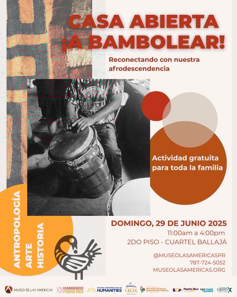La programación de junio culmina el domingo, 29 de junio de 11:00am a 4:00pm con el esperado Domingo Familiar que esta vez tendrá como tema: “A Bambolear” – Reconectando con nuestra afrodescendencia, una jornada festiva e interactiva para todas las edades que celebra nuestras raíces africanas con actividades que incluyen: