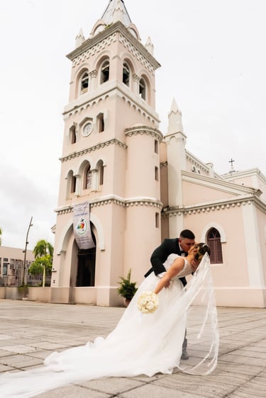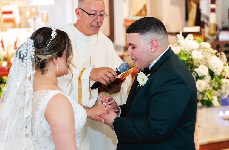 La ceremonia en la iglesia Dulce Nombre de Jesús en Humacao, Puerto Rico estuvo llena de solemnidad, pero sobre todo de sonrisas y gestos dulces que mostraban lo felices que estaban. Cada mirada entre ellos era un recordatorio de que estaban viviendo el día que siempre soñaron.