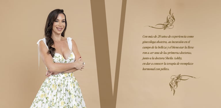 Con más de 20 años de experiencia como ginecóloga obstetra, su incursión en el campo de la belleza y el bienestar la llevaron a ser una de las primeras doctoras, junto a la doctora Sheila Ashby, en dar a conocer la terapia de reemplazo hormonal con pellets.