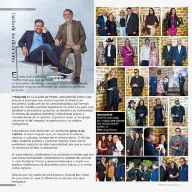 Producida en la ciudad de Miami, esta edición cobra vida gracias a la magia que ocurre cuando lo diverso se encuentra. Cada una de las personalidades que forman parte de nuestra portada representa no solo a su país, sino también a su esencia, su lucha, su talento y su humanidad. En medio de acentos distintos, trayectorias únicas y miradas llenas de propósito, logramos crear un lenguaje universal: el del respeto, la admiración y la belleza compartida.