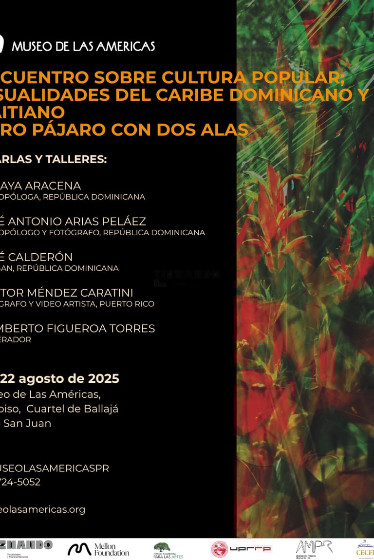 Una semana más tarde, del 19 al 22 de agosto, el Museo será sede del encuentro sobre cultura popular; Visualidades del Caribe Dominicano y Haitiano, Otro pájaro con dos alas. Será una jornada intensiva de charlas, talleres e intercambio que abordará las expresiones culturales sincréticas del Caribe desde la antropología, la espiritualidad, el arte y la fotografía. Este encuentro contará con la participación de destacadas figuras como la antropóloga Soraya Aracena, el fotógrafo y antropólogo José Antonio Arias Peláez, el houngan José Calderón, el fotógrafo y videoartista Héctor Méndez Caratini, y el moderador, Humberto Figueroa Torres.