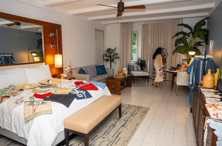 El primero de estos eventos, “Atelier in a Suite”, fue una experiencia única celebrada en Casa del Mar, una majestuosa villa de dos pisos frente al mar, ubicada a pasos de la playa de Isla Verde. Este exclusivo espacio cuenta con una terraza privada al aire libre, jacuzzi, sala, dos bares y cocina, creando el escenario perfecto para un encuentro íntimo y sofisticado. José Luis Maldonado, de Expresión Creativa, colaboró en la decoración de la suite. Los invitados disfrutaron de música, hors d'oeuvres y cócteles auspiciados por Grey Goose y Bombay Sapphire, además de acceso exclusivo para adquirir piezas únicas de moda, arte y joyería del diseñador, Herman Nadal.