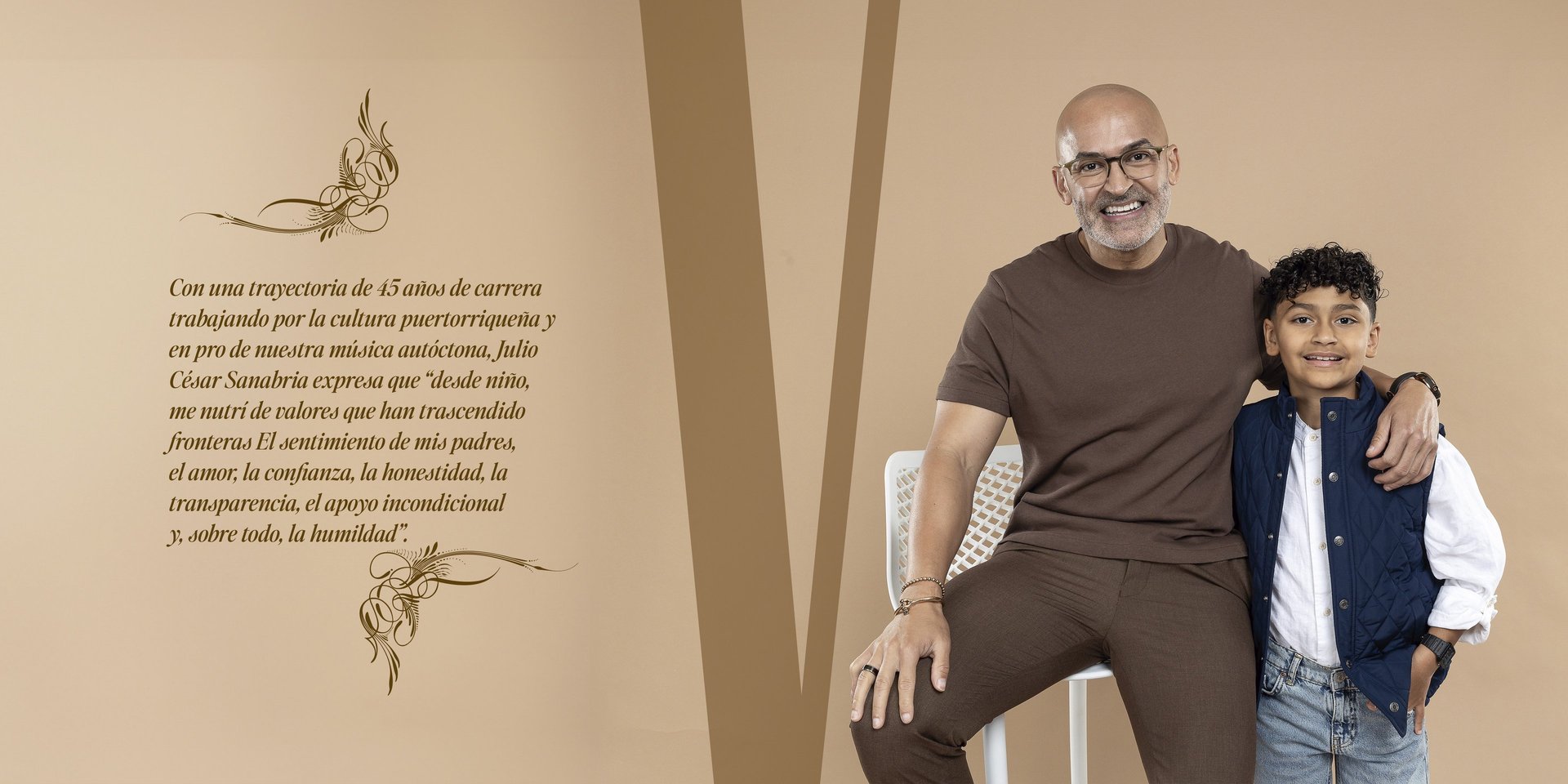 Con una trayectoria de 45 años de carrera trabajando por la cultura puertorriqueña y en pro de nuestra música autóctona, Julio César Sanabria expresa que “desde niño, me nutrí de valores que han trascendido fronteras: el sentimiento de mis padres, el amor, la confianza, la honestidad, la transparencia, el apoyo incondicional y, sobre todo, la humildad. Ellos me enseñaron a ser un amigo de verdad y vivir agradecido. Vengo de una familia campesina. Crecí en la ruralía del pueblo de Guayama. Esos valores los llevo como un tatuaje en mi piel y mi corazón. Es algo que les debo a esos dos viejos hermosos, uno que está en el cielo y una que está en el campo de Guayama”.