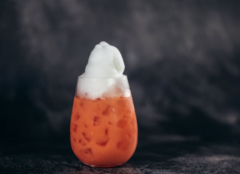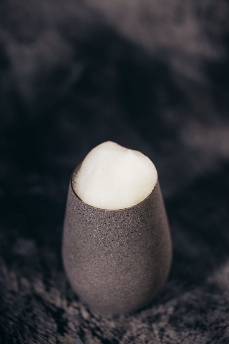 Jelga – Este milk punch clarificado resalta el enfoque innovador del equipo de mixología de lala, utilizando un método de filtración natural que crea excelente claridad y suavidad. Elaborado con el whisky japonés Toki, calabaza asada, sirop de canela y leche evaporada, el cóctel se inspira en las tradicionales barriguitas de vieja. El toque final es un “polvo de barriguita vieja” sustentable, un tributo nostálgico pero elevado a los sabores clásicos de la isla.
