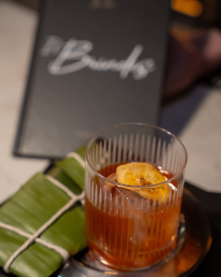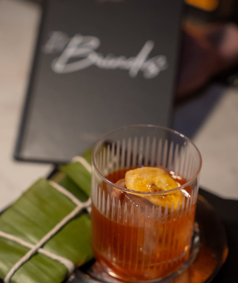 Mancha e’ Plátano – Un homenaje a las raíces agrícolas de Puerto Rico cuyo nombre está inspirado en el icónico poema de Luis Lloréns Torres, esta versión del clásico Old Fashioned incorpora Ron del Barrilito Tres Estrellas, infusión de plátano y guineo, bitters aromáticos y especias. Concluye con un delicado toque de hoja de plátano, honrando el legado jíbaro con profundidad y tradición.