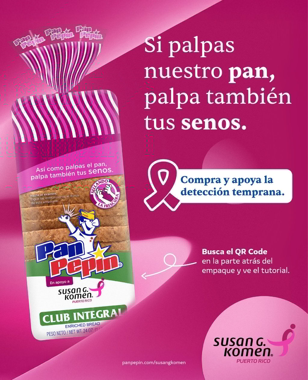 Durante octubre, mes de la concienciación sobre el cáncer de mama, Pan Pepín reafirma su compromiso de más de una década con la organización Susan G. Komen, respaldando sus esfuerzos dirigidos a promover la detección temprana, el tratamiento adecuado y la educación sobre esta enfermedad, la más común entre la población femenina.