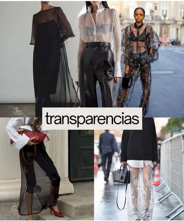 Las transparencias vuelven a ocupar un lugar protagónico. Bien llevadas, se convierten en aliadas poderosas que aportan un toque sexy y atrevido, siempre con elegancia. Más que mostrar, sugieren, permitiendo destacar la personalidad y seguridad de quien las usa.
